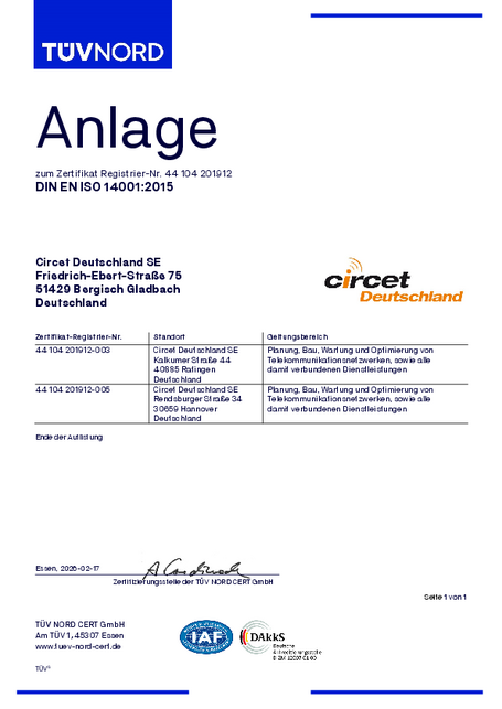 Als verantwortungsbewusster Anbieter von Infrastrukturlösungen setzen wir auf ressourcenschonende Prozesse und nachhaltiges Handeln. Die ISO 14001-Zertifizierung verdeutlicht unser Engagement für Umweltschutz, Effizienz und zukunftsfähige Lösungen.