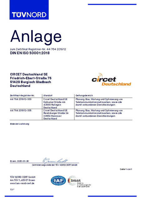 Die Zertifizierung nach dem international anerkannten Standard für Energiemanagement bestätigt, dass der verantwortungsvolle und effiziente Umgang mit Energie für uns einen hohen Stellenwert hat und wir unsere Energieverbräuche systematisch erfassen, bewerten und kontinuierlich optimieren.